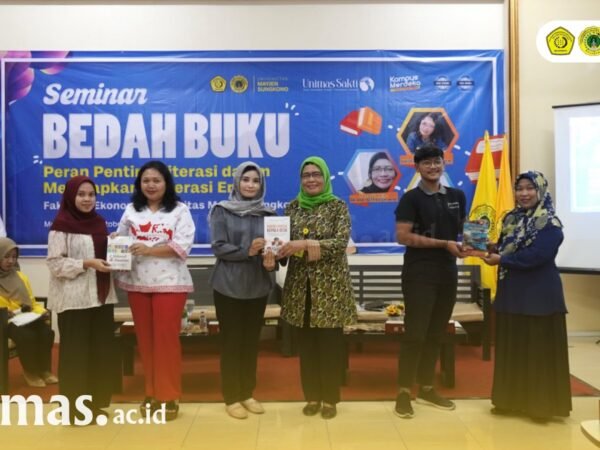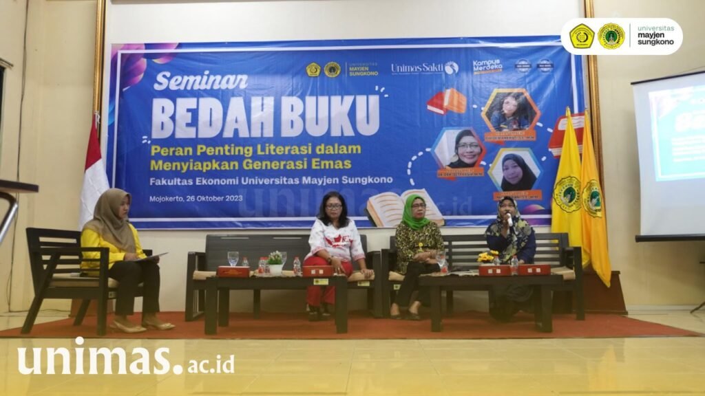 Mojokerto – Fakultas Ekonomi Universitas Mayjen Sungkono (Unimas) Mojokerto terus mendorong penguatan budaya literasi di lingkungan kampus. Salah satu upaya yang dilakukan adalah melalui kegiatan seminar bedah buku bertema “Peran Penting Literasi dalam Menyiapkan Generasi Emas” yang digelar di Aula Fakultas Ekonomi Unimas, Kamis (26/10/2023).